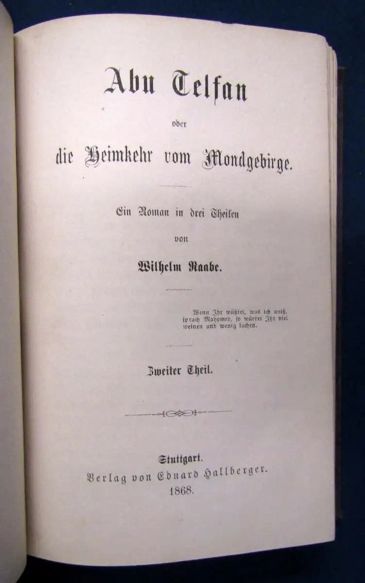 Erstausgabe in Buchform, der Erstdruck seines Romans erschien 1867 in Band IX der Zeitschrift Über Land und Meer. - BA 2019