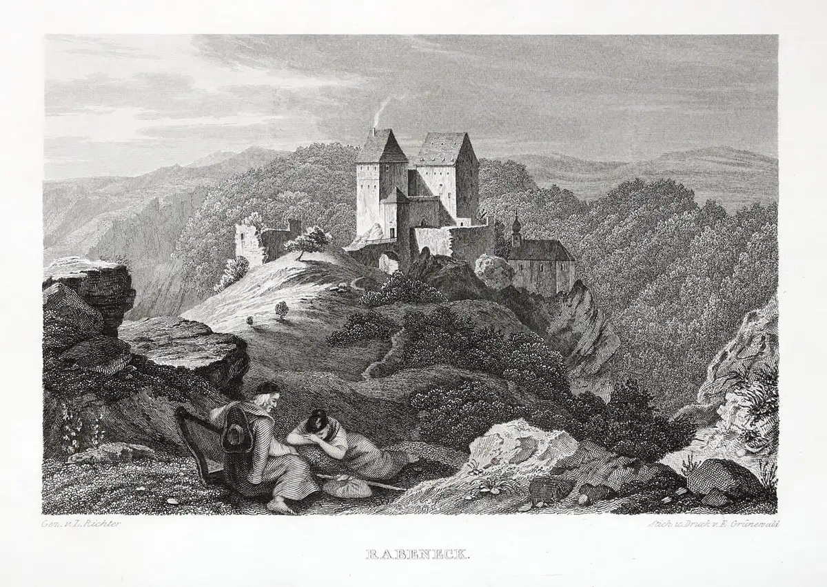 Rabeneck. Burg: Fränkische Schweiz. Originaler Stahlstich Grünewald um 1840