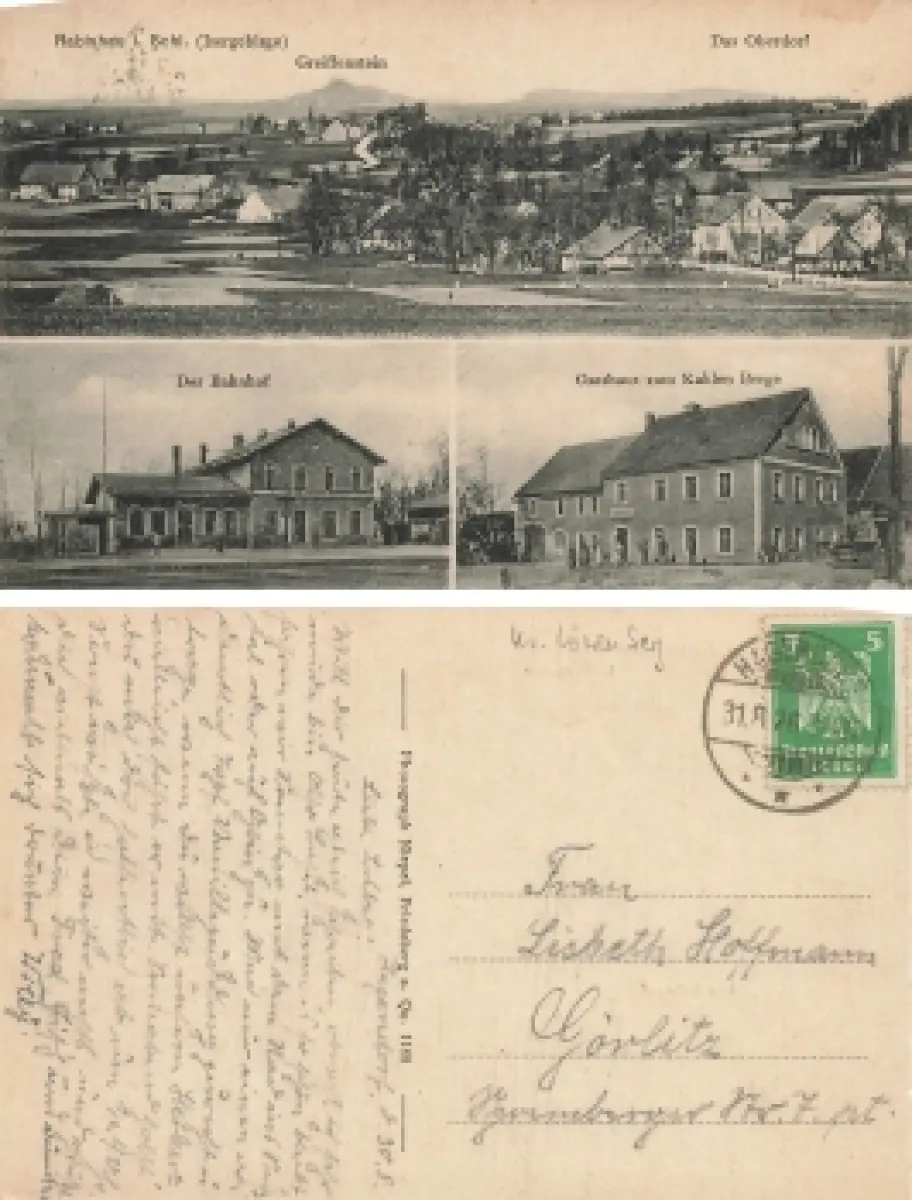 Rabishau Isergebirge Schlesien Bahnhof Gasthaus zum Kahlen Berge Rebiszow o 1926