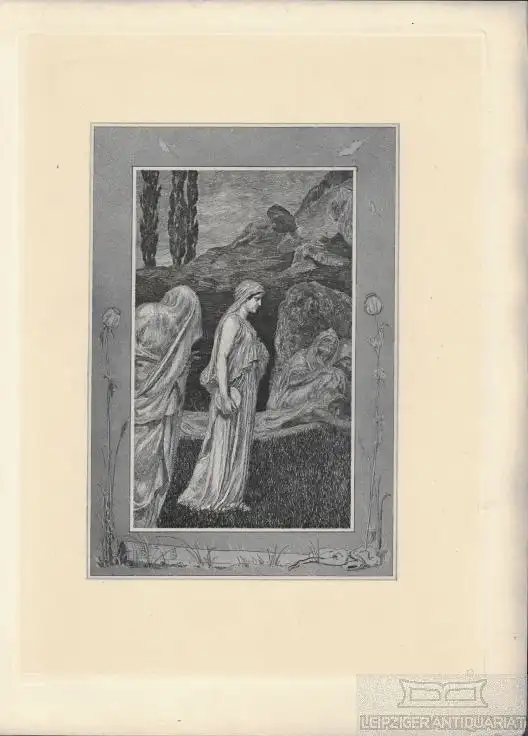 Bemerkungen: Zustand: Blatt mit minimalen Lichtrand und kleinen Knicken an den Ecken, mit kleinen Einriss am linken Rand // Auf gewalztem gelbem China, auf Velinkarton, Strichätzung & Aquatinta, in Schwarz. Kunstgrafik. Druckgröße: 35 x26 cm, Max Klinger (1857 Leipzig - 1920 Großjena) die Mappe I. Max Klingers Radierungen zu Apulejus Märchen Amor und Psyche Opus Va. enthielt 15 Vollbilder