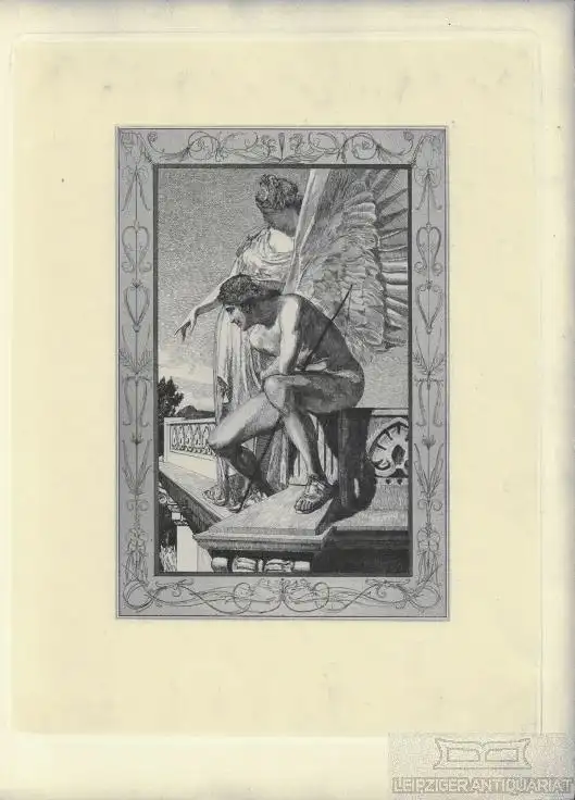 Bemerkungen: Zustand: Blatt mit minimalen Lichtrand und kleinen Knicken an den Ecken // Auf gewalztem gelbem China, auf Velinkarton, Strichätzung & Aquatinta, in Schwarz. Kunstgrafik. Druckgröße: 35 x26 cm, Max Klinger (1857 Leipzig - 1920 Großjena) die Mappe I. Max Klingers Radierungen zu Apulejus Märchen Amor und Psyche Opus Va. enthielt 15 Vollbilder