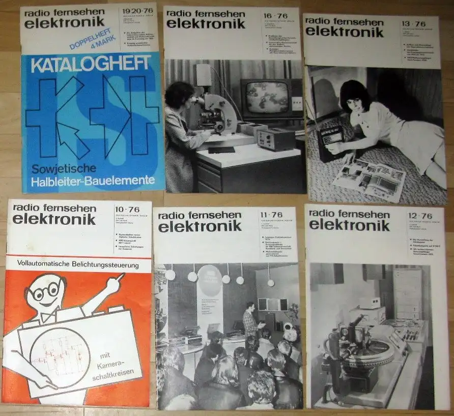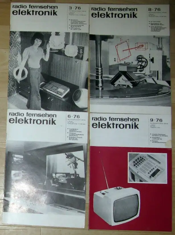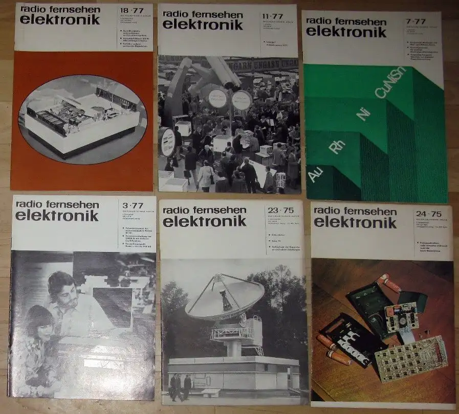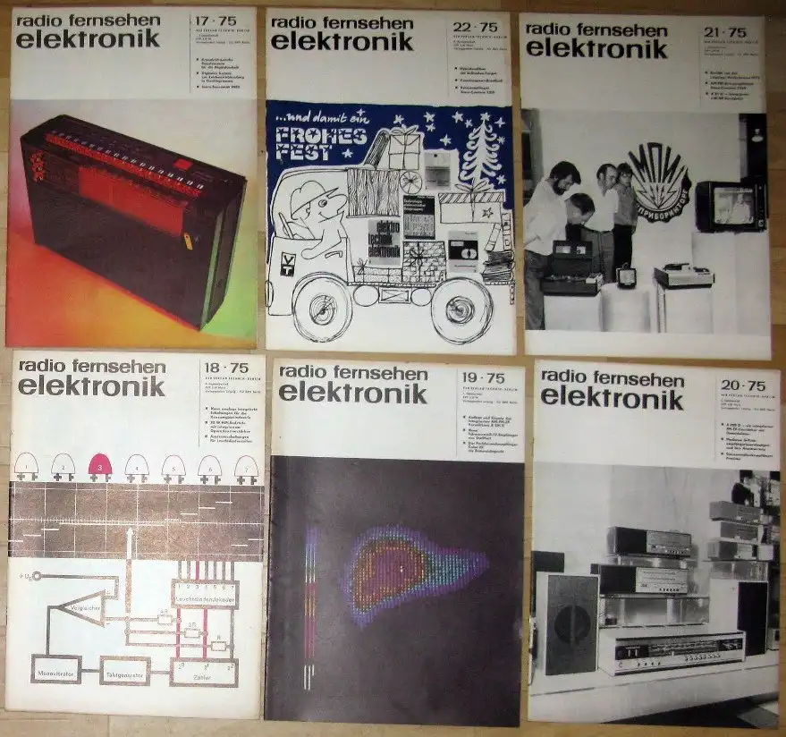 guter bis sehr guter Zustand, geringe Gebrauchs- und Alterungsspuren: Papier teils etwas vergilbt, aber Seiten sauber und ordentlich - Seiten teils etwas eselsohrig - Umschläge teils leicht verschmutzt - selten kleine Blessuren - einige Heftränder mit schmalem Schmutzstreifen, Sie erhalten folgende Hefte: - 1975: 2-5, 7, 9, 11, 12, 15-24 - 1976: 3, 6, 8-13, 16, 19, 21, 23 - 1977: 3, 7, 11, 18 - 1978: 4, 6-11 - 1982: 8 - 1983: 4, 9 - 1986: 2 - 1988: 3, 8 mit zahlreichen Artikeln über die Technik von Radio, Fernsehen und Elektronik: Schaltpläne, Mikrorechner, Schaltkreise, Kassettenrekorder, Verstärker, Leipziger Messe, Geräte, Bauteile, HiFi, Neuheiten, Taschenrechner, Bauanleitungen, Halbleiter, Speicher, Röhren, Dioden usw, Softcover, ca. 20,5 x 29, je ca. 32-72 Seiten mit zahlreichen Bildern