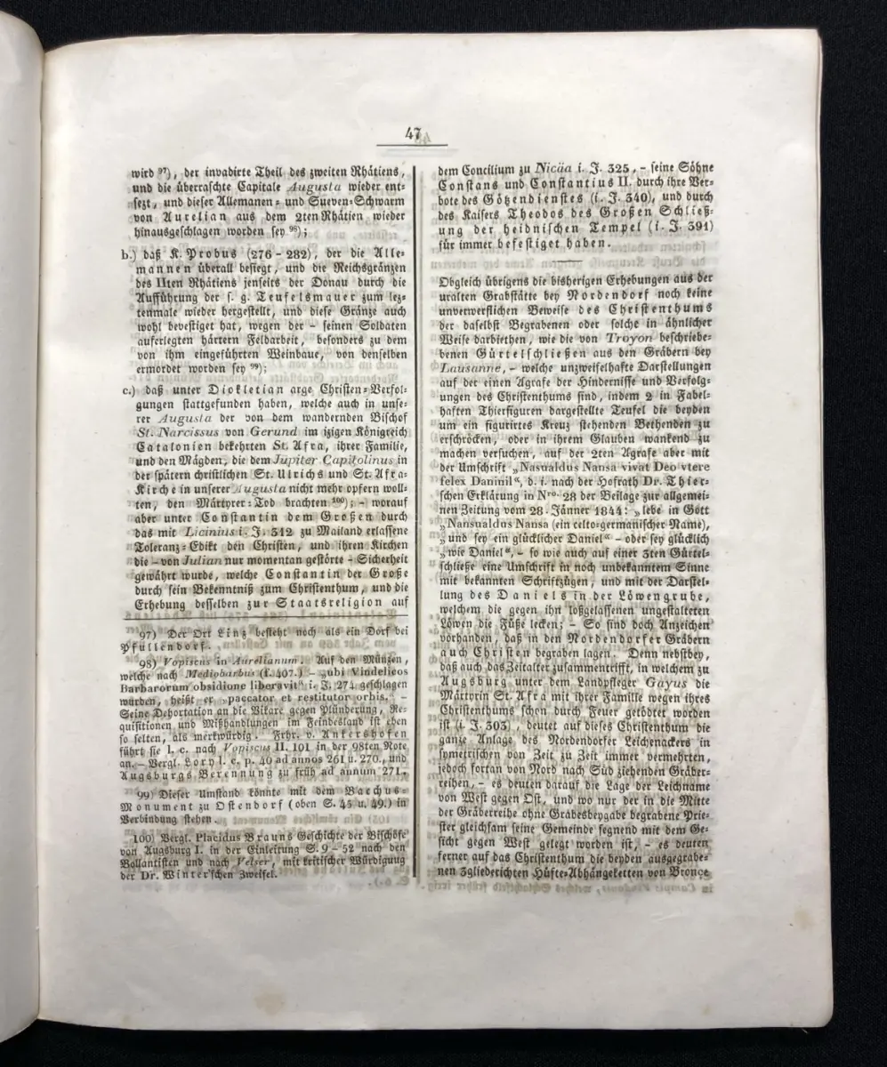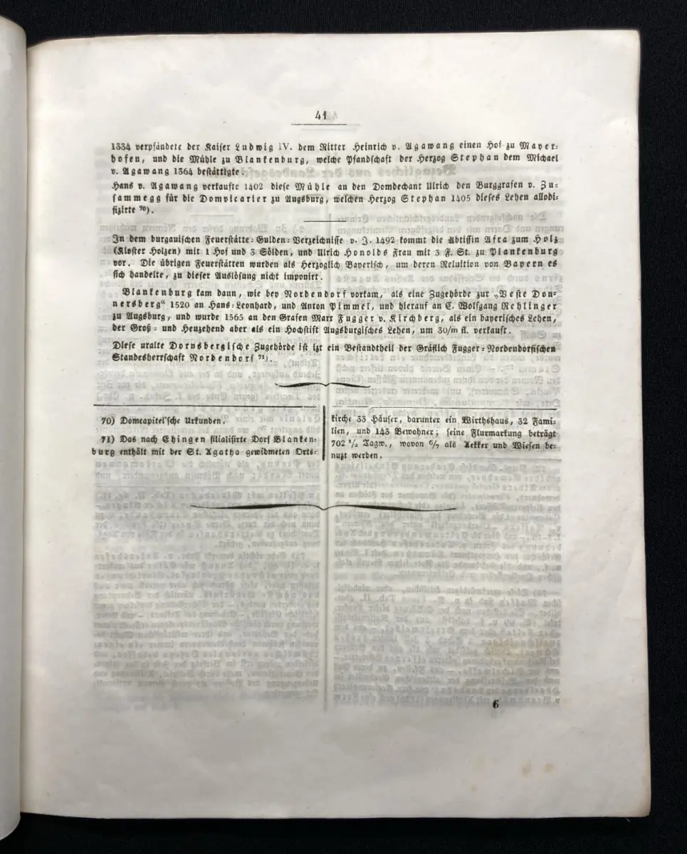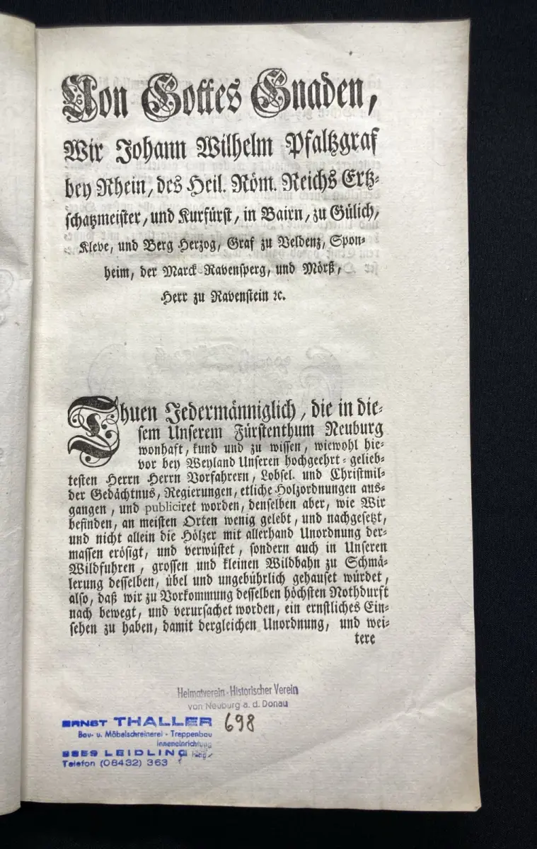 Einband eselsohrig, Papier gering gebräunt und beide Spiegel sowie Titel beschrieben und gestempelt vom Historischen Verein Neuburg. Fehlende Tafeln in Kopie beigegeben( diese sind im Preis bereits berücksichtigt)