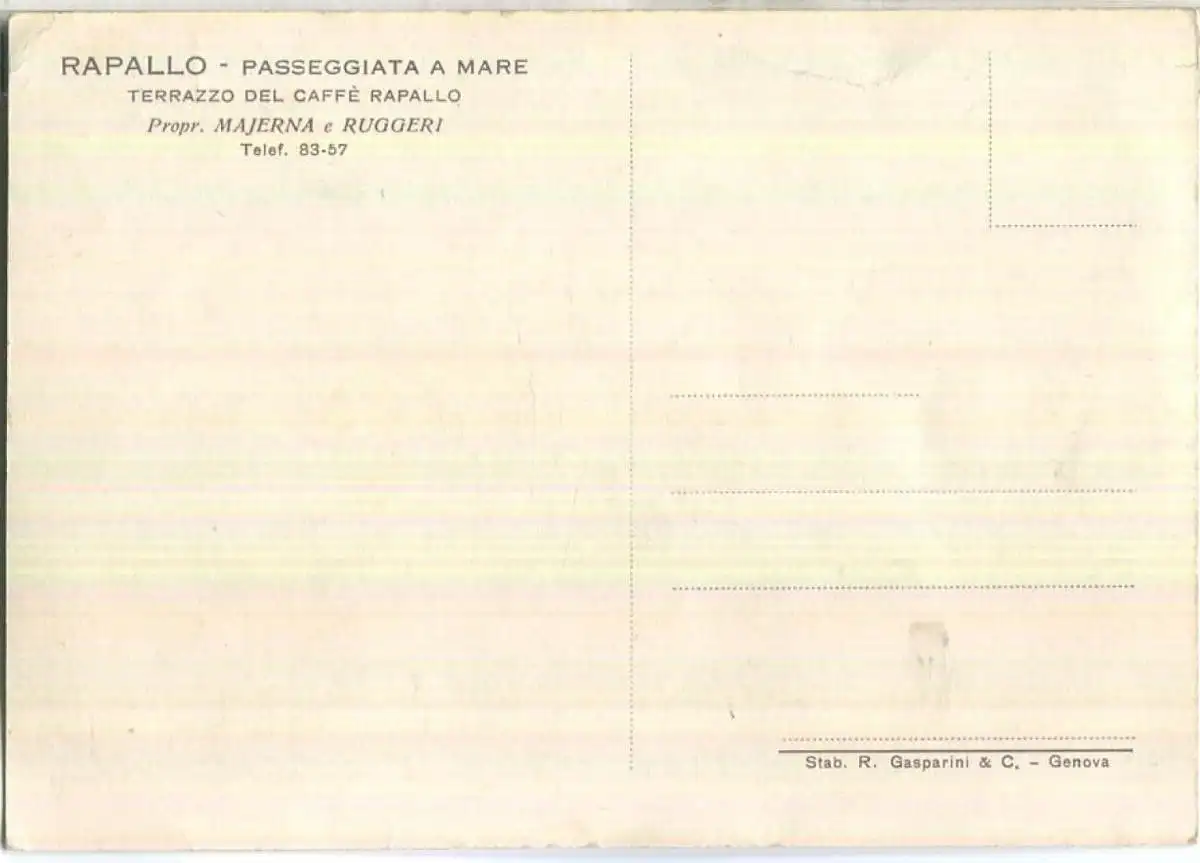 Rapallo - Passeggiata a mare dal Terrazzo del Caffe Rapallo - Propr. Majerna e Ruggeri - Ediz. R. Gasparini & C. Genova