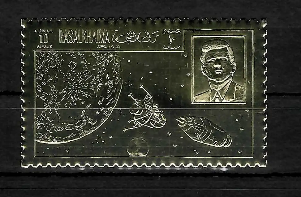 Ras Al-Khaimah: Golden big stamp of Apollo 11, mnh