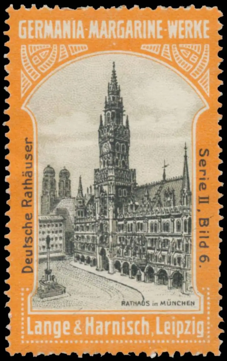 Serie II: Deutsche Rathäuser, Bild 6, orange, Größe/Zustand: 5x3 , guter Zustand, Original alte Reklamemarke die seinerzeit für die Werbung benutzt wurde
