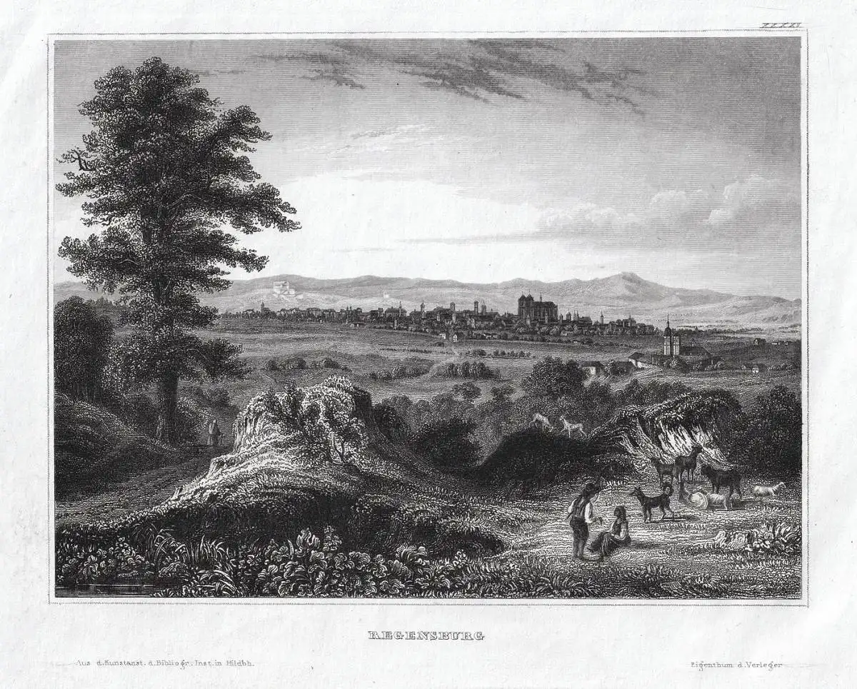 Regensburg. Gesamtansicht. Originaler Stahlstich um 1840