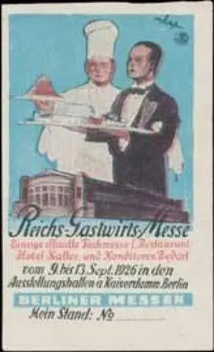 einzige offizielle Fachmesse für Restaurant-, Hotel-, Kaffee- und Konditoren-Bedarf, Größe/Zustand: 7x4 , guter Zustand, Original alte Reklamemarke die seinerzeit für die Werbung benutzt wurde