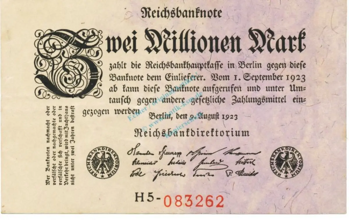 Reichsbanknote , 2 Millionen Mark Schein gbr. DEU-115.b, Ros.102, P.103 Weimarer Republik 1923 Reichsbank