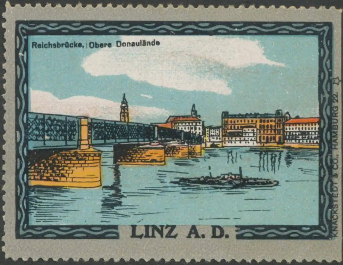 Schiff, Druck: Knackstedt & Co. Hamburg, Größe/Zustand: 4x6 , guter Zustand, Original alte Reklamemarke die seinerzeit für die Werbung benutzt wurde