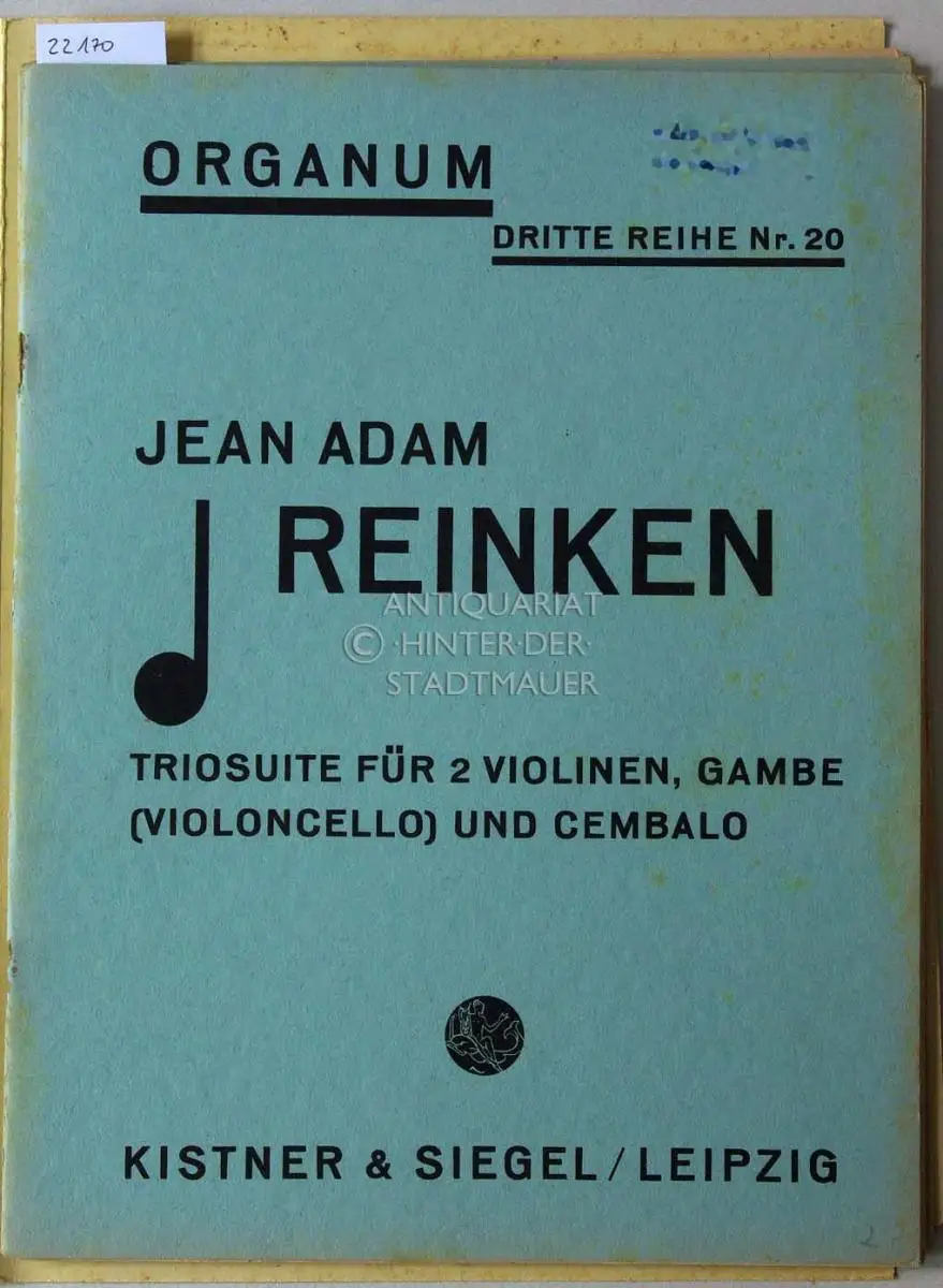 Reinken, Jean Adam: Triosuite für 2 Violinen, Gambe (Violoncello) und Cembalo. ("Hortus musicus" 1688 No. 6) [= Organum Dritte Reihe, Nr. 20] Bearb. v. Max Seiffert.