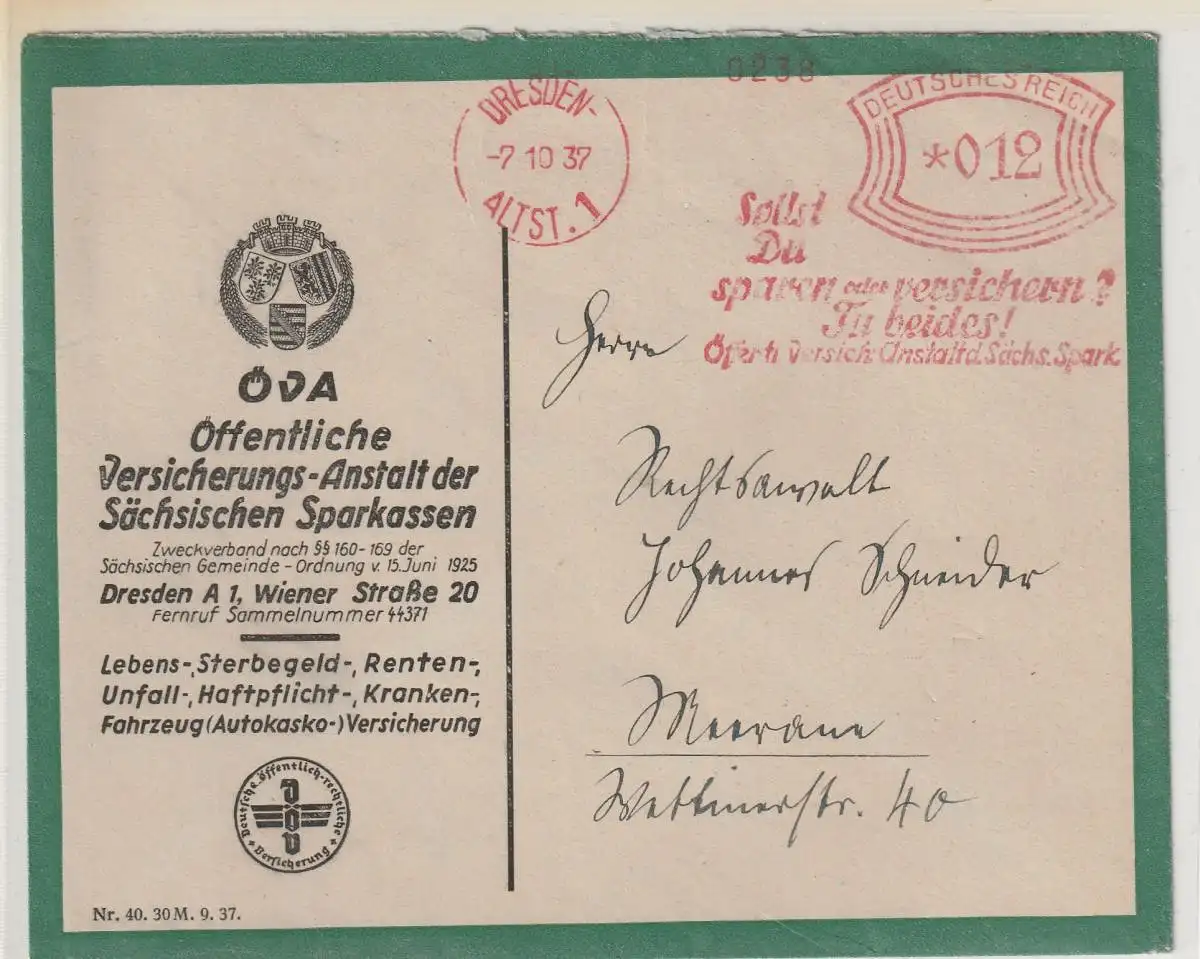 Reklamebrief: Versicherungsanstalt der Sparkassen Dresden