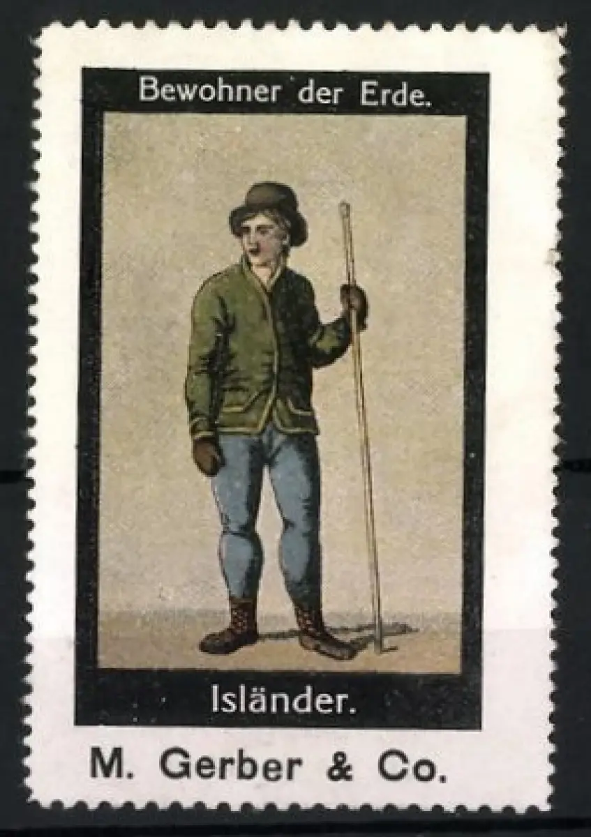 Reklamemarke Bewohner der Erde, Isländer mit Stock