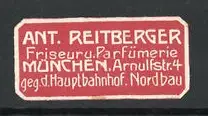 Reklamemarke Friseur Ant. Reitberger, Arnulfstr. 4, München