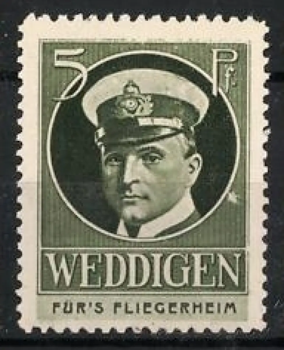 Reklamemarke Für's Fliegerheim, Portrait U-Boot Kommandant Otto Weddigen
