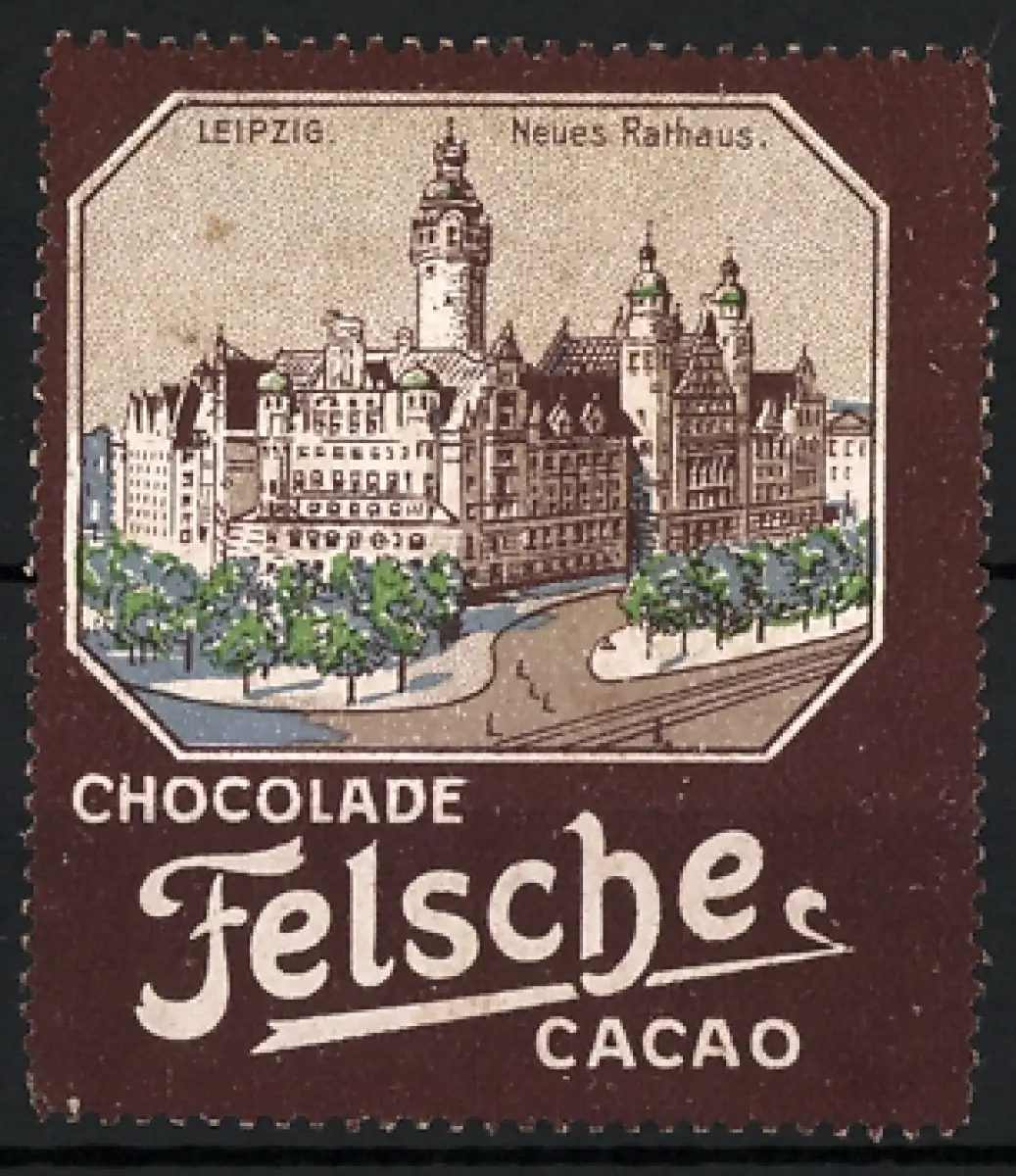 Reklamemarke Leipzig, Chocolade Felsche, Neues Rathaus
