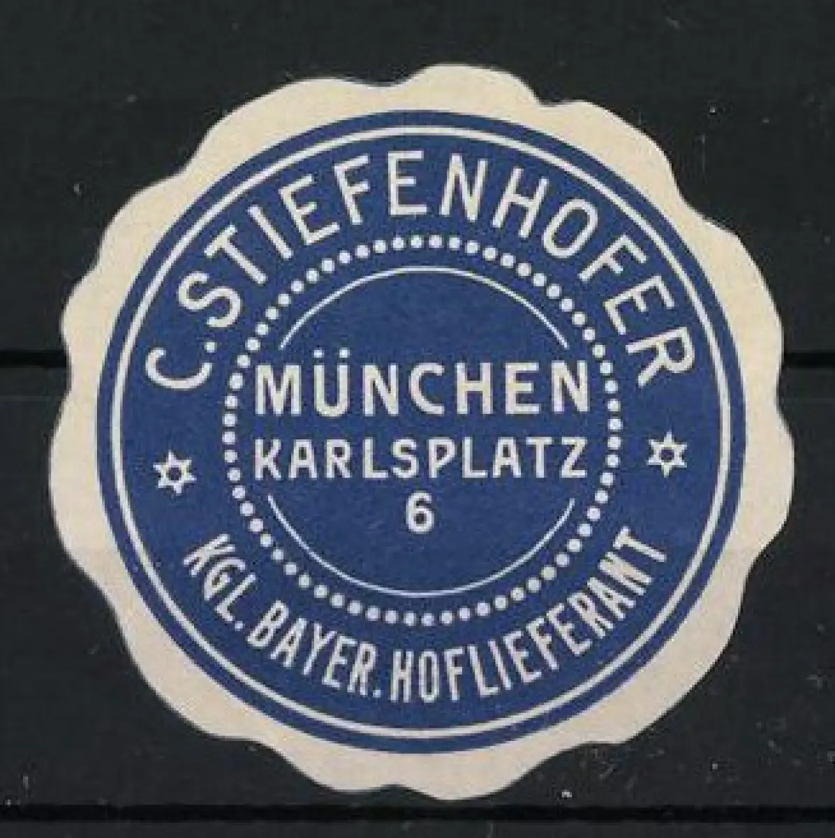 Reklamemarke München, C. Stiefenhofer, Kgl. Bayer. Hoflieferant, Karlsplatz 6