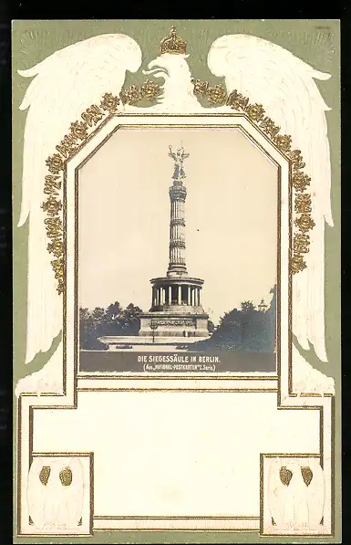 Relief-AK Berlin-Tiergarten, Blick auf die Siegessäule, Rahmen mit Reichsadler