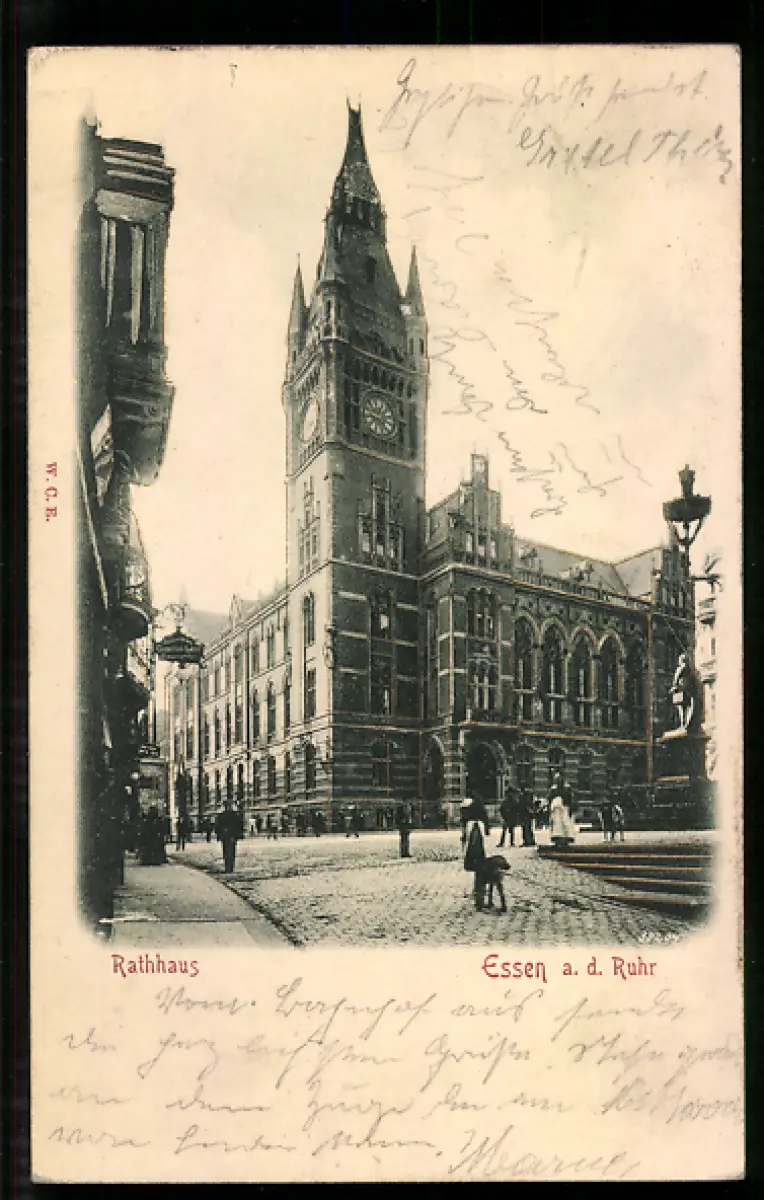 Relief-AK Essen a. d. Ruhr, Rathaus mit Denkmal