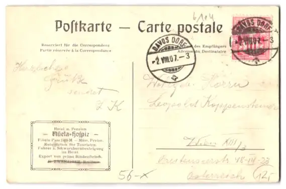 Relief-AK Flüela-Hospiz und Schwarzhorn