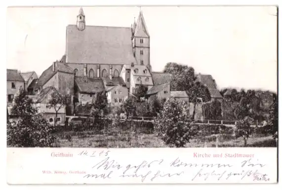 Relief-AK Geithain, Kirche und Stadtmauer