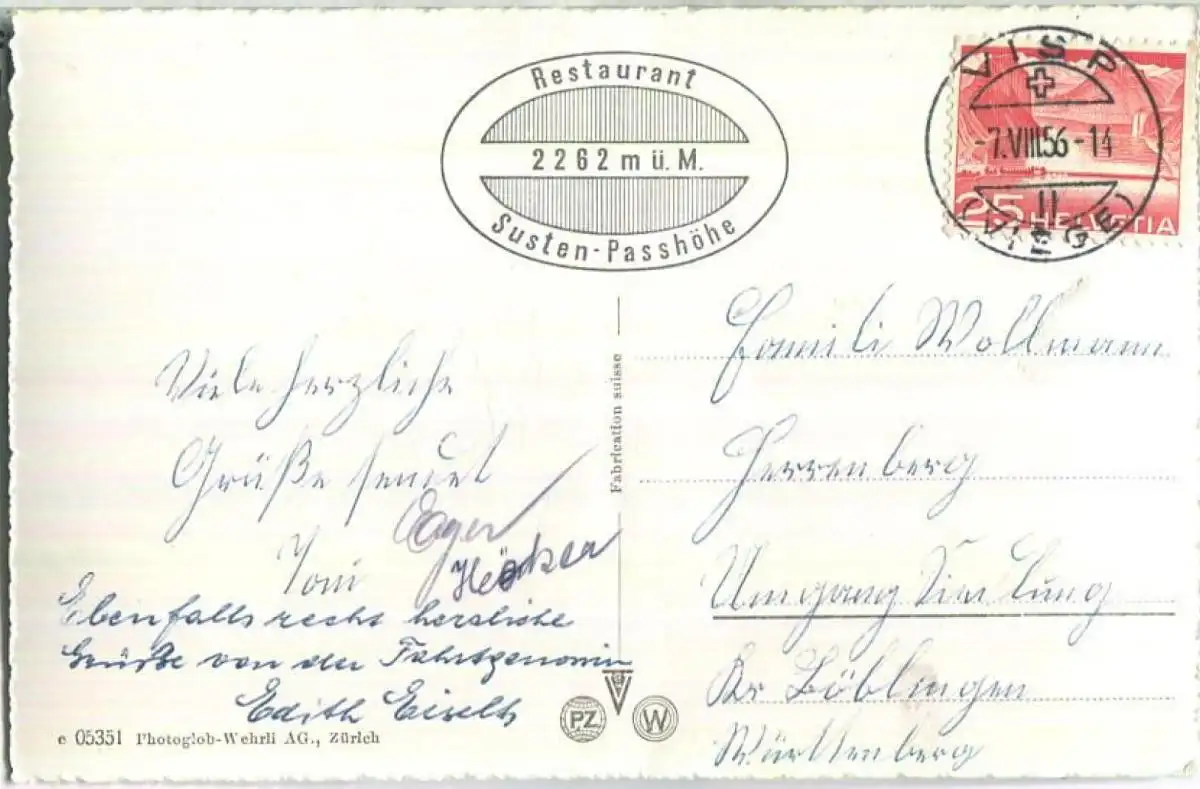 Restaurant Sustenpasshöhe mit Parkplatz - Verlag Photoglob-Wehrli AG Zürich