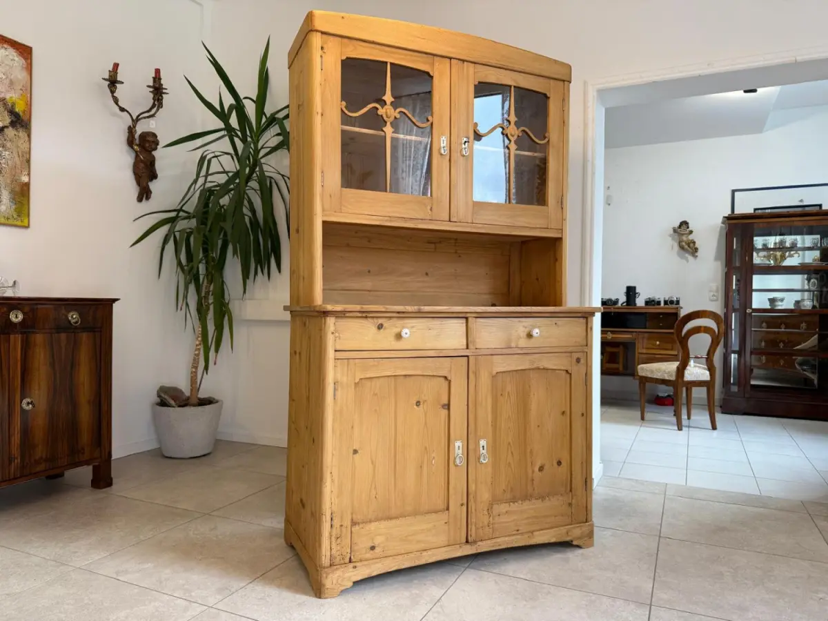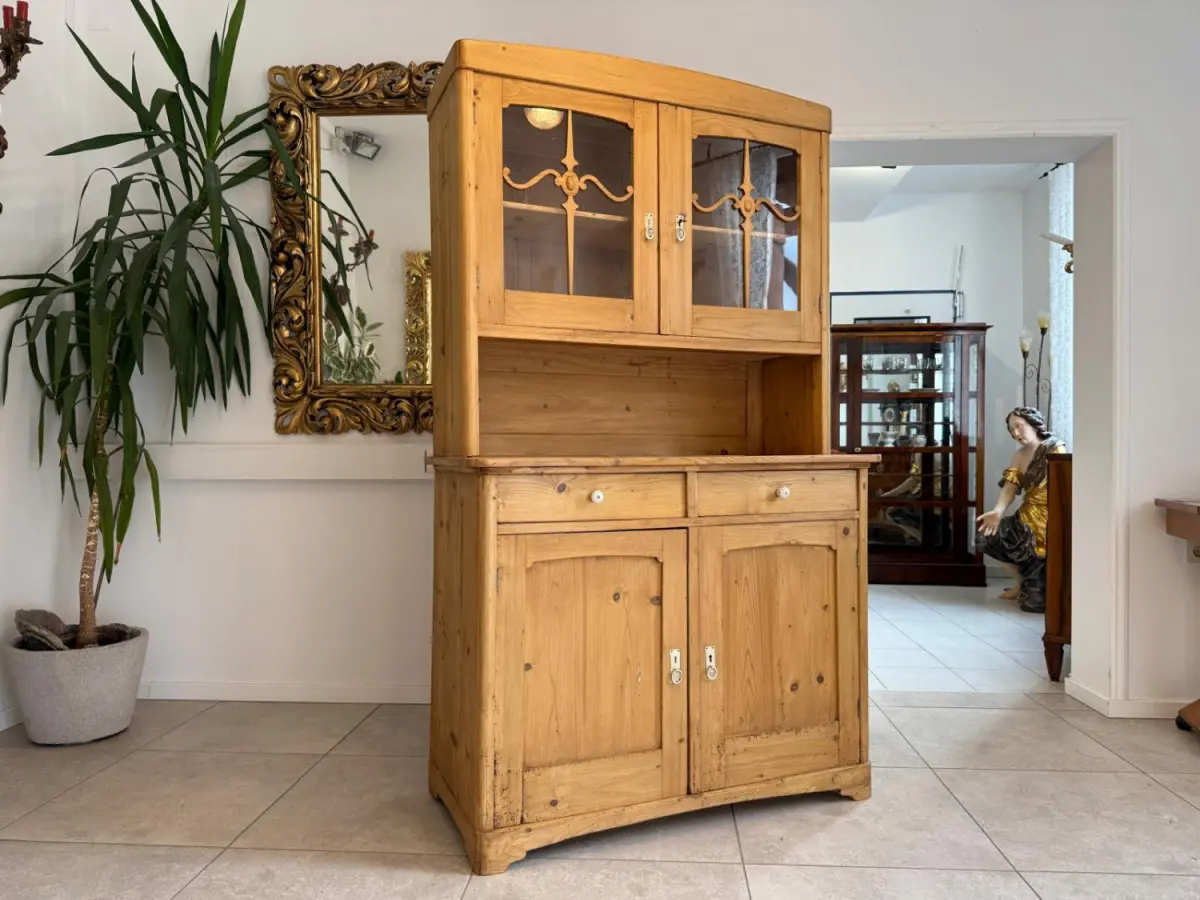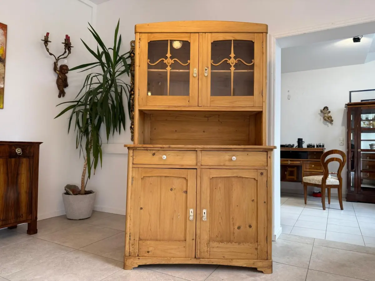 Restaurierte Jugendstil Küchenkredenz Naturholz Vitrinenschrank