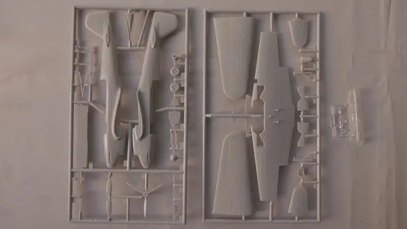 Einzelteile (Plastikbauteile) sind noch am Rahmen fixiert; Sichthülle wurde geöffnet.