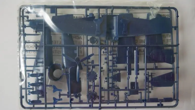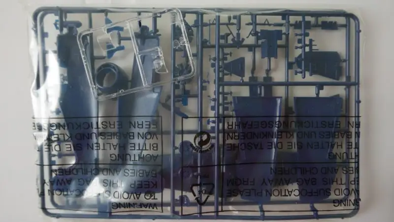 Einzelteile (Plastikbauteile) sind noch am Rahmen fixiert, Sichthülle wurde geöffnet.