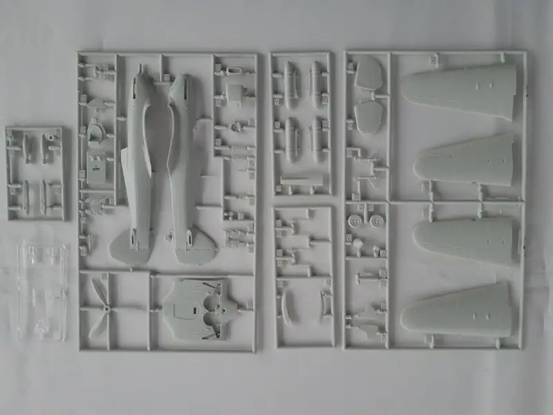 Einzelteile (Plastikbauteile) sind noch am Rahmen fixiert. Sichthülle wurde geöffnet.