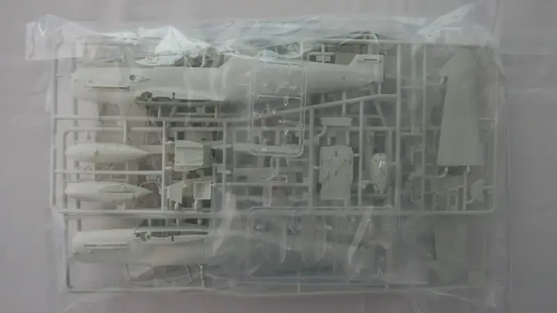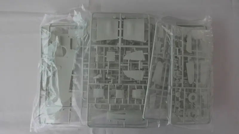 Einzelteile (Plastikbauteile) sind noch am Rahmen fixiert, Sichthülle wurde geöffnet.