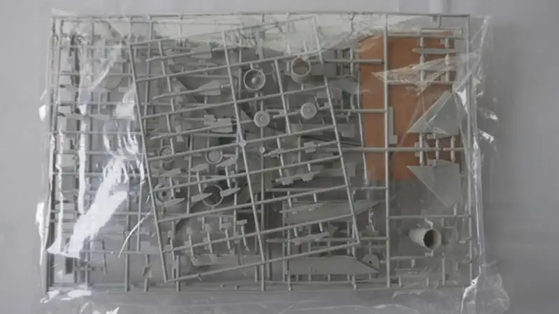 Einzelteile (Plastikbauteile) sind noch am Rahmen fixiert. Sichthülle wurde geöffnet.