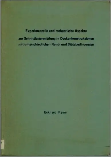 Eigenhändige Widmung des Verfassers auf Schmutztitelblatt: "Herrn / Dipl.-Ing. H.-J. Ehrhardt, / Beratender Ingenieur VBI, / mit Dank für gut Zu- / sammenarbeit herzlichst / überreicht. / Berlin, d. 17. Juli 1974 / Eckhard Reyer". Signaturschild auf Rücken; in selbstklebende Folie eingeschlagen; noch gutes Exemplar