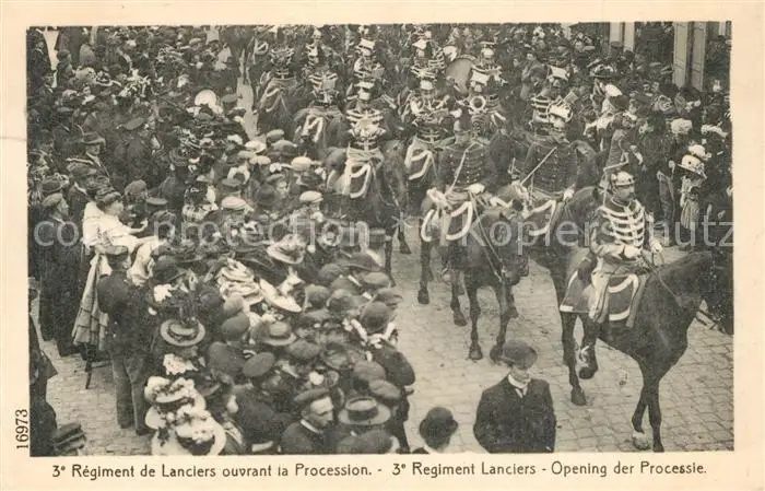 Rhode_St_Genese 3e Regiment de Lanciers ourant la Procession Rhode_St_Genese postalisch gelaufen 1910 Erhaltung siehe scans [WerneD78] WernPID7