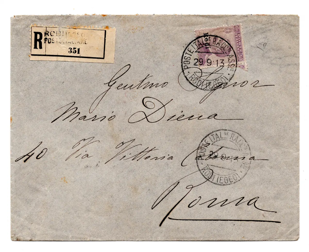 - Rhodos - Michetti Cent. 50 Nr. 7 isoliert auf Umschlag Racc. nach Rom am 29.9.13 - Interessante nicht philatelistische Postnutzung - ED - Kat. 325 n. 942/18