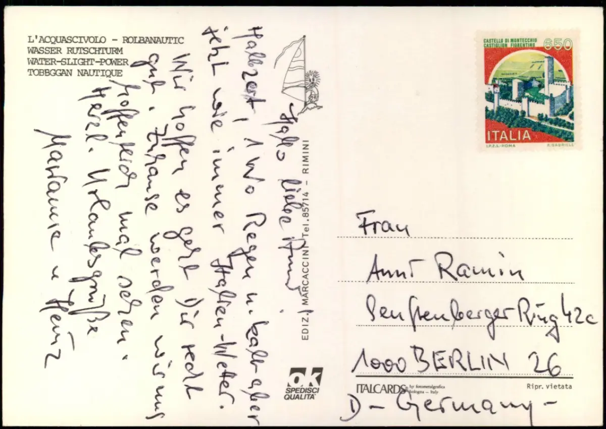 Riccione L'ACQUASCIVOLO ROLBANAUTIC WATER SLIGHT-POWER WASSER RUTSCHTURM 1980