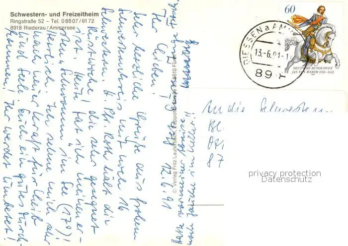 Riederau_Ammersee Schwestern und Freizeitheim Seebruecke Riederau Ammersee postalisch gelaufen 1991 Erhaltung siehe scans [WerneD78] WernPID7