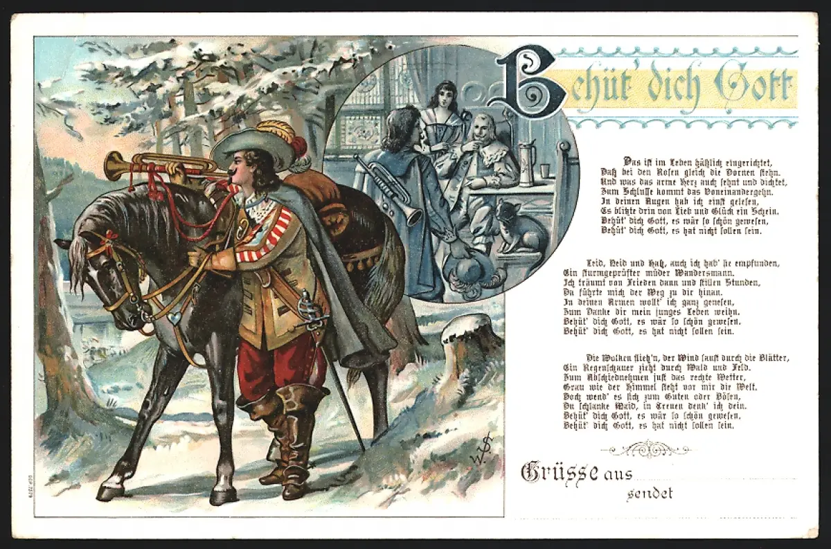 Riesen-AK Behüt` Dich Gott!, Trompeter von Säckingen im verschneiten Wald