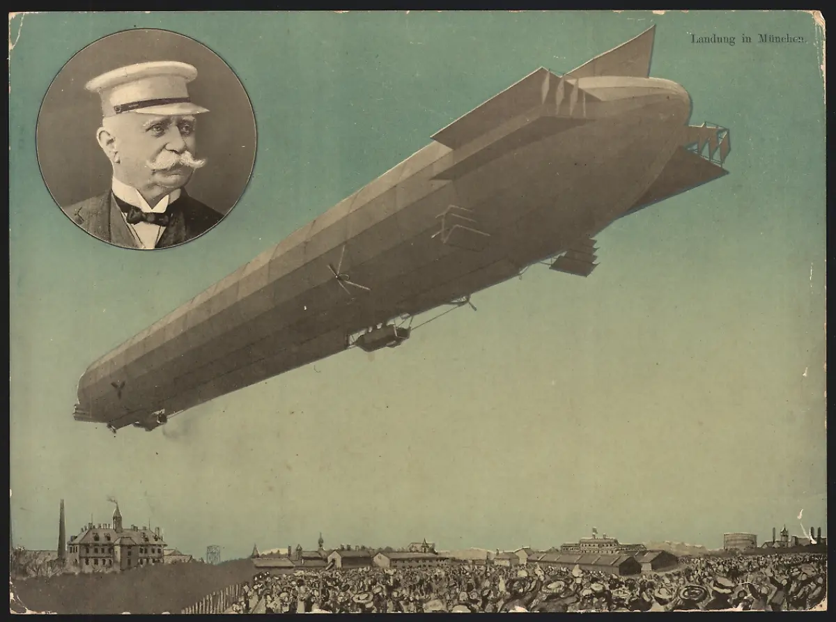Riesen-AK München, Das lenkbare Reichsluftschiff von Dr. ing. Graf von Zeppelin bei der Landung