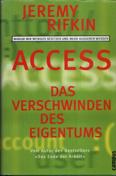 Der Kapitalismus erreicht eine neue Stufe; Access; Jeremy Rifkin; Die Privatisierung des kulturellen Gemeinguts; Das Verschwinden des Eigentums; Warum wir weniger besitzen und mehr ausgeben werden; Politik; Gesellschaft; Soziologie