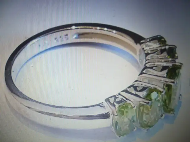 Ring besetzt mit 5 Peridot Edelsteinen massiv in 925 Silber gefertigt, aus den 1990 Jahren ein Hingucker !