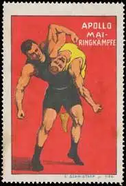 Apollo Mai-Ringkämpfe, Sport, ringen, Größe/Zustand: 7x5 , guter Zustand, Original alte Reklamemarke die seinerzeit für die Werbung benutzt wurde