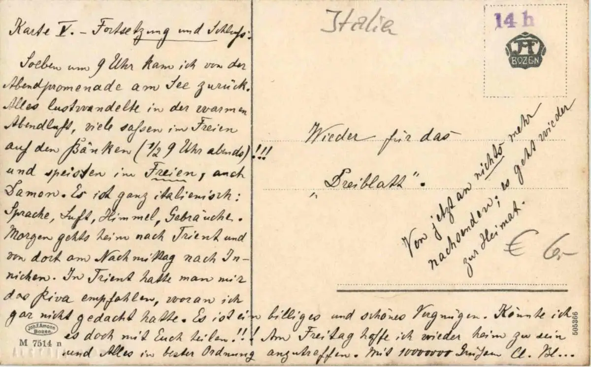 Danke. Alles Bestens. Können Sie mir allenfalls mitteilen, aus welchem Jahr die Postkarte stammt? Besten Dank.
