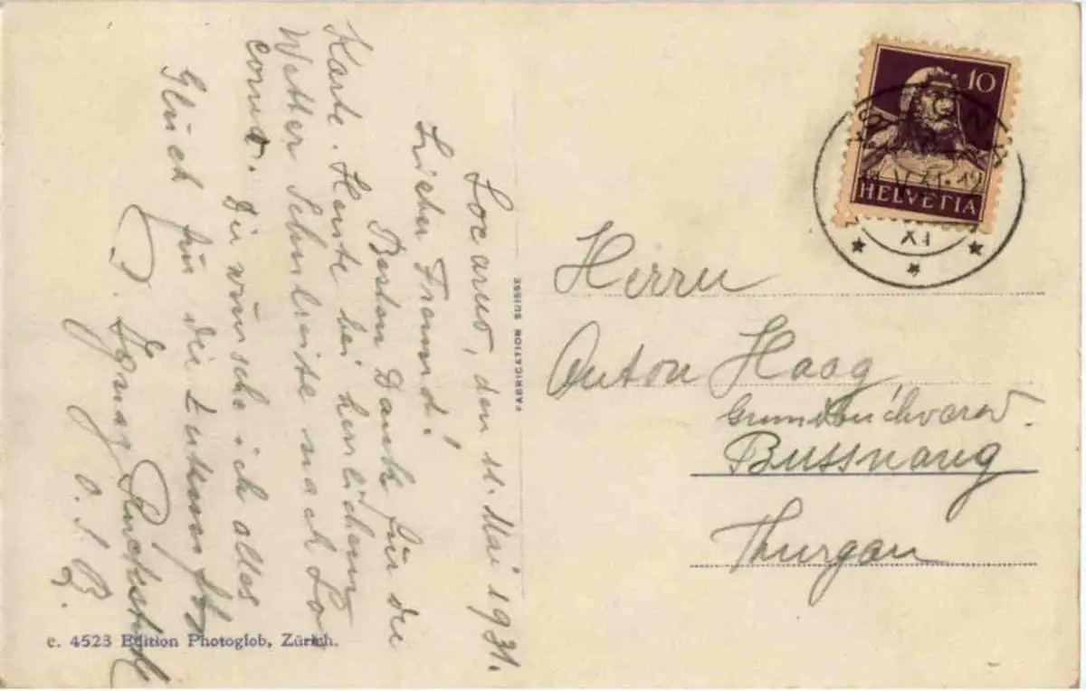 Danke. Alles Bestens. Können Sie mir allenfalls mitteilen, aus welchem Jahr die Postkarte stammt? Besten Dank.