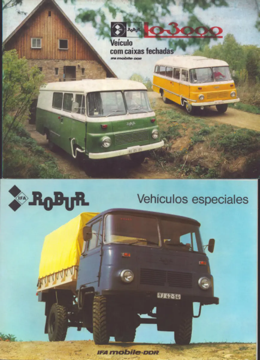 10 Prospekte in portugisich, spanisch u.a. Sprachen Mappe leicht beschädigt, Prospekte guter Zustand