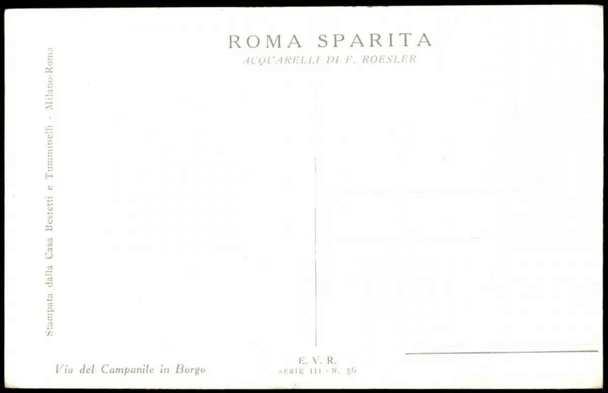 Rom Roma Via del Campanile in Borgo ACQUARELLI DI F. ROESLER 1910