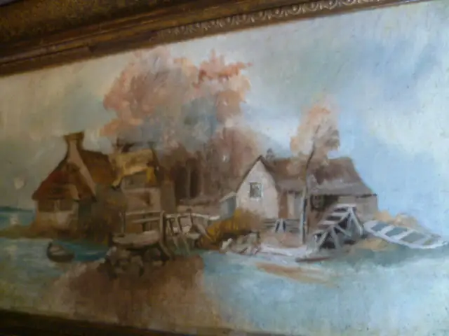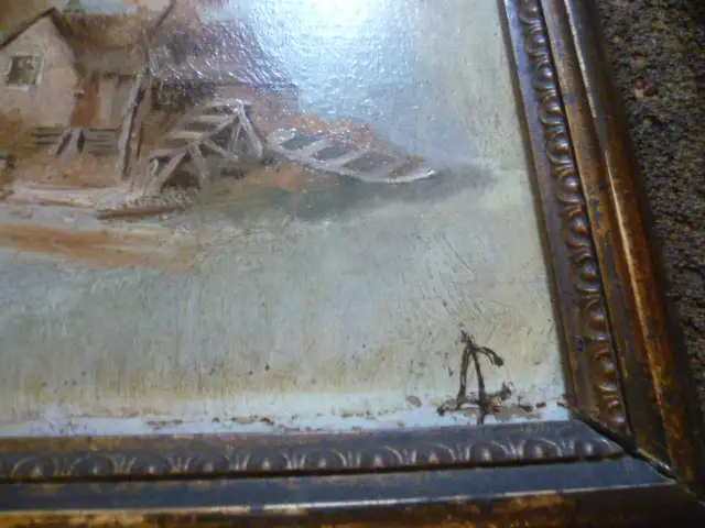 Romantisches Fischerdorf an der Ost oder Nordsee Romantiker um 1880 Ölgemälde signiert? Ölgemälde auf Malpappe rechts im Bild signiert ,