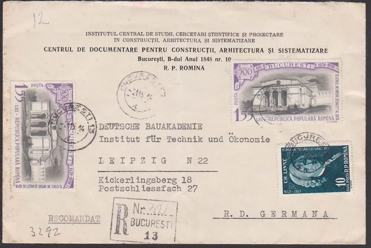 Romina rumänien Bucaresti R-Brief mit Ch. Linne, Theater Oper Balett
