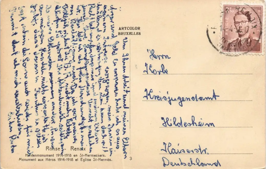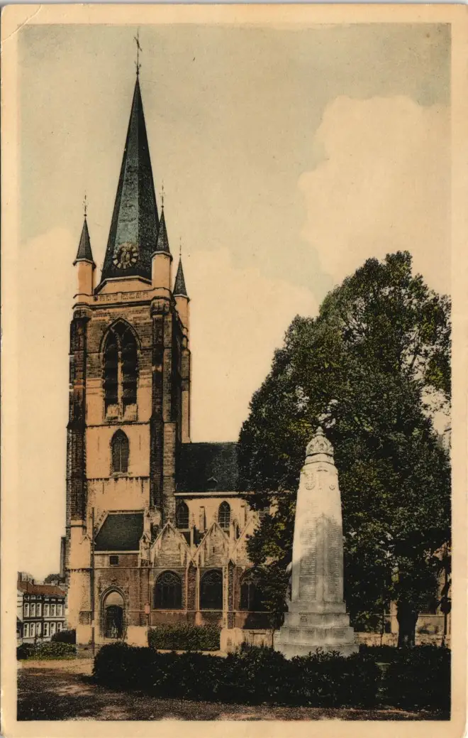 Ronse Renaix Straßen Ansicht Monument Denkmal, Kirche Hermeskerk 1950