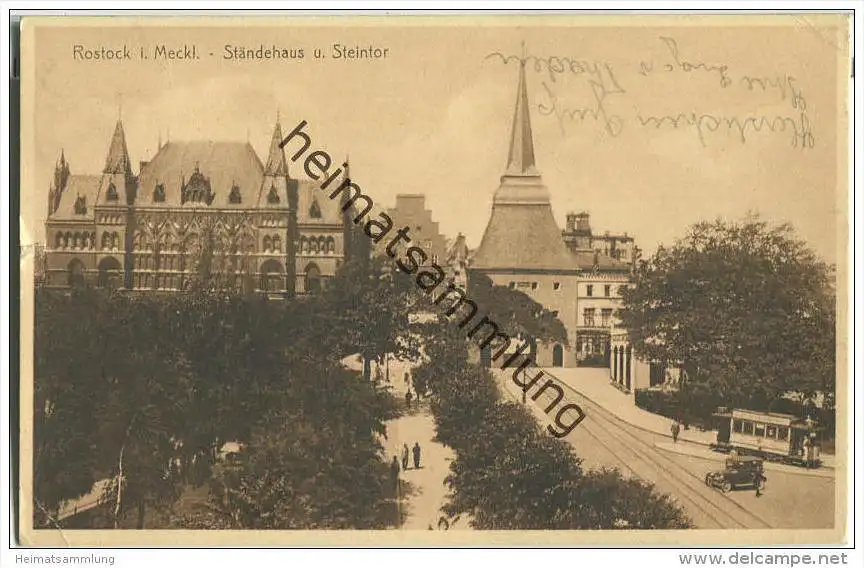 Rostock - Ständehaus - Steintor - Verlag Stengel & Co GmbH Dresden - Einkerbung Mitte links - Ecken bestossen (G37141) gel. 1929